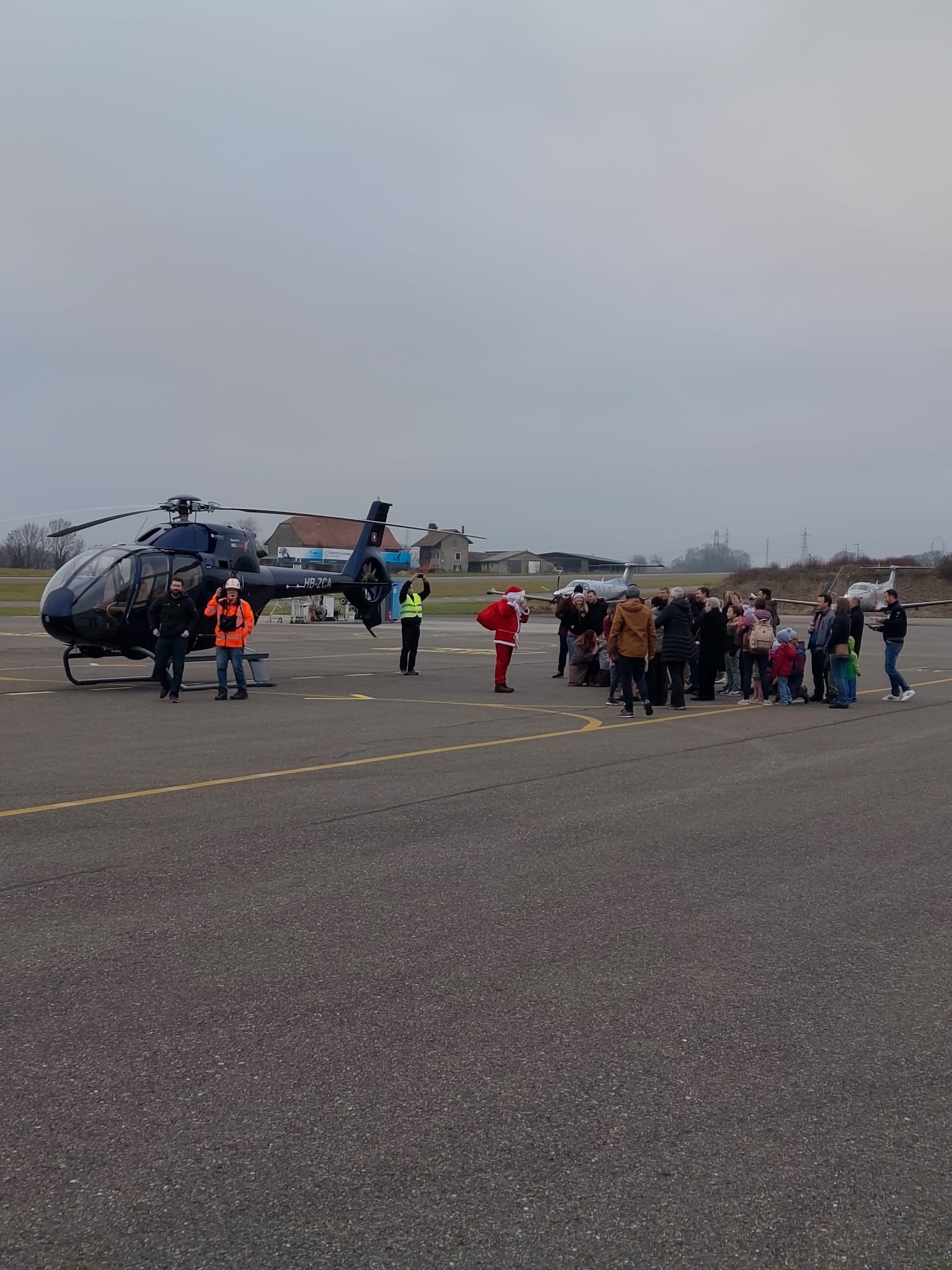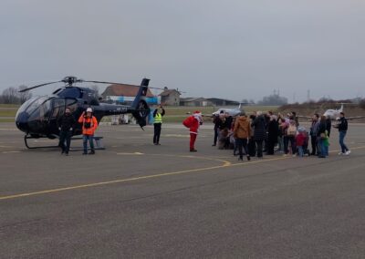 Mais cette année, une surprise les attendait : le Père Noël avait annoncé qu’il arriverait en hélicoptère étincelant, directement sur le tarmac, et qu’il viendrait visiter leur hangar pour voir leur travail.